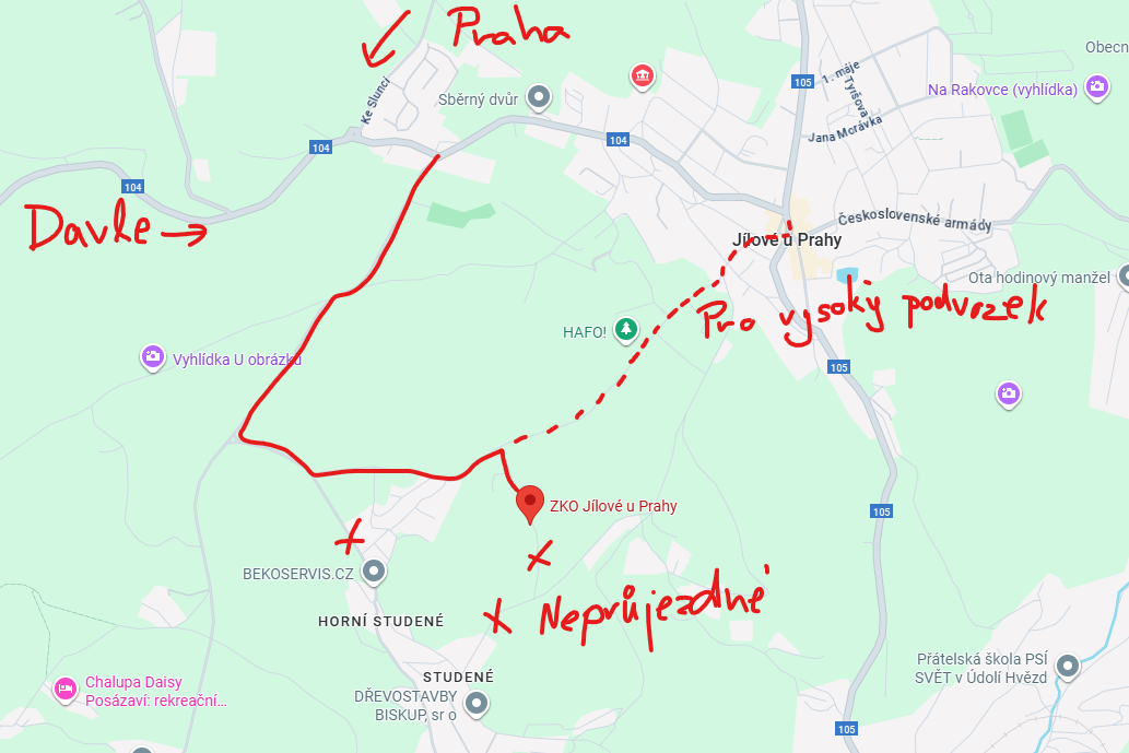 V GOOGLE MAPÁCH I WAZE (waze nabízí 3 trasy - pro auto je průjezdná pouze trasa po cestě K Pepři) BY JIŽ MĚLO BÝT SPRÁVNÉ UMÍSTĚNÍ PO ZADÁNÍ ZKO JÍLOVÉ U PRAHY